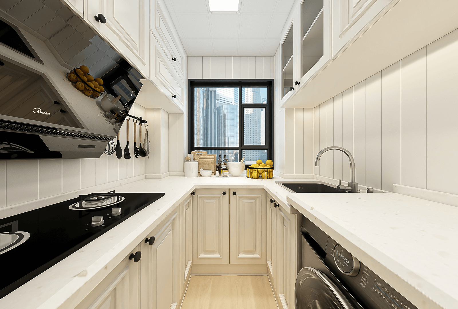 我们都知道考虑到厨房动线和储物空间,尽量在装修时做U型规划。这个设计其实也可以复用到其他房间,U形规划后可以充分利用到三面墙体进行储物,收纳量瞬间能翻倍。依托三面墙体打造不同布局的柜体增加储物空间,对于小户型来说更是关键。