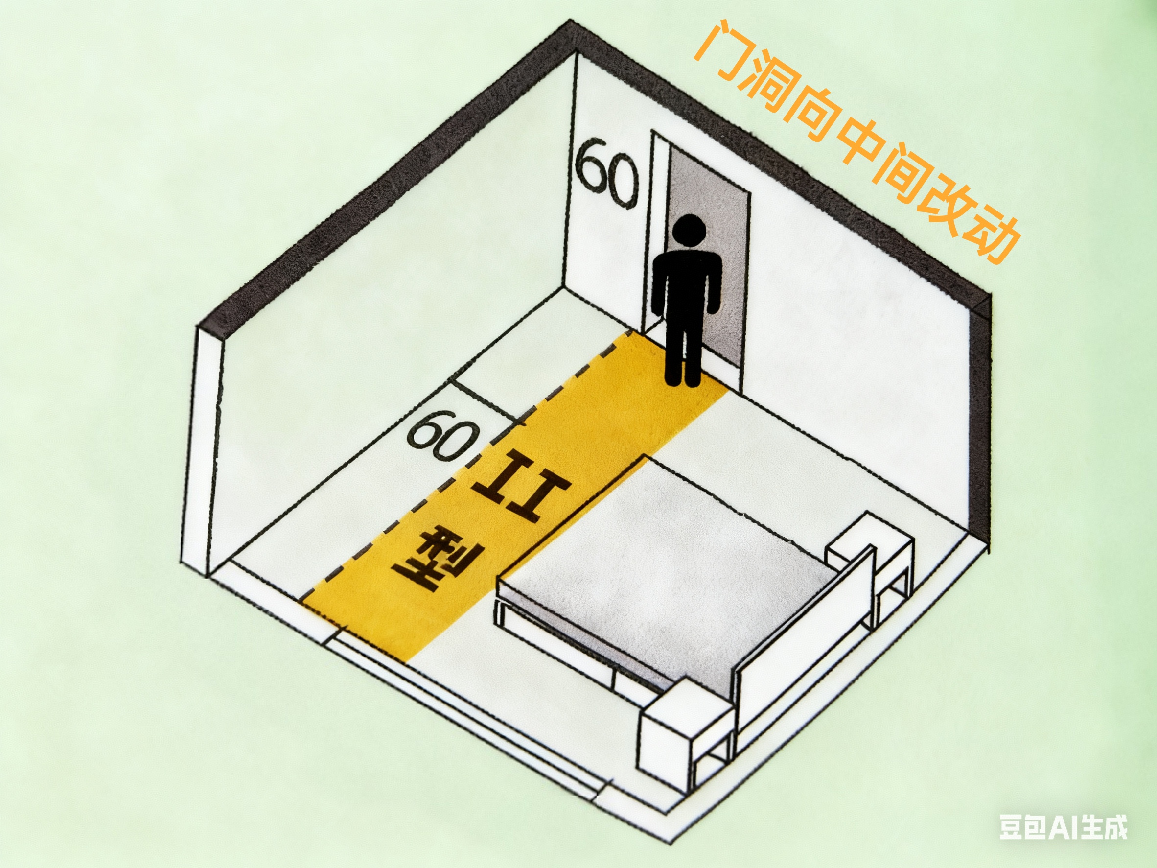很多家庭的卧室或者书房等空间的门是开在墙角的,也就是说门后几乎没有空间做储物,直接浪费一整墙的储物空间。所以,如果你的设计师可以帮你把门稍微挪一点距离,将门洞向中间改动60cm(不能低于这个宽度)就能让进门的走道从I型变成II型,利用墙面空间做整体衣柜或储物柜。